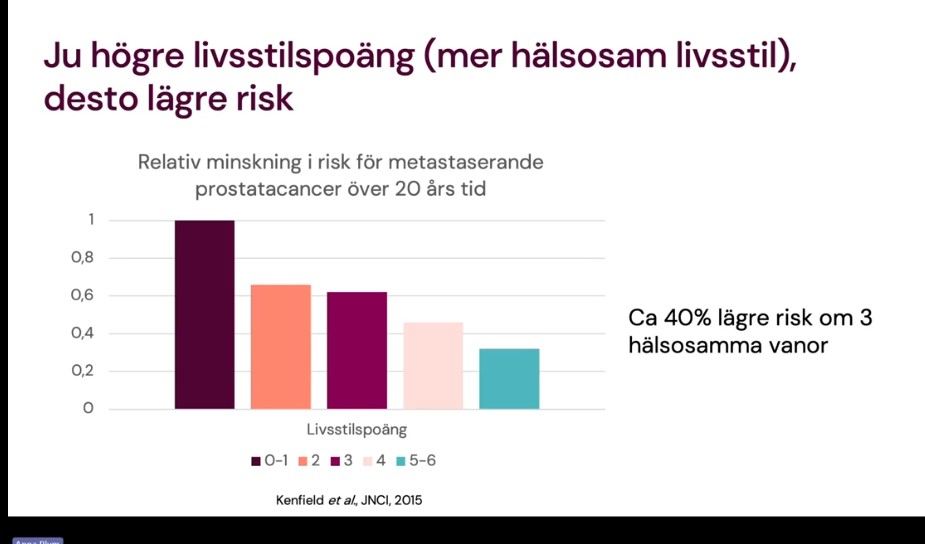 Här nedan är resultatet från en studie från 2015. Män som uppfyllde 5-6 av de 6 hälsokriterierna minskade sin risk att få en spridd prostatacancer med 68%.